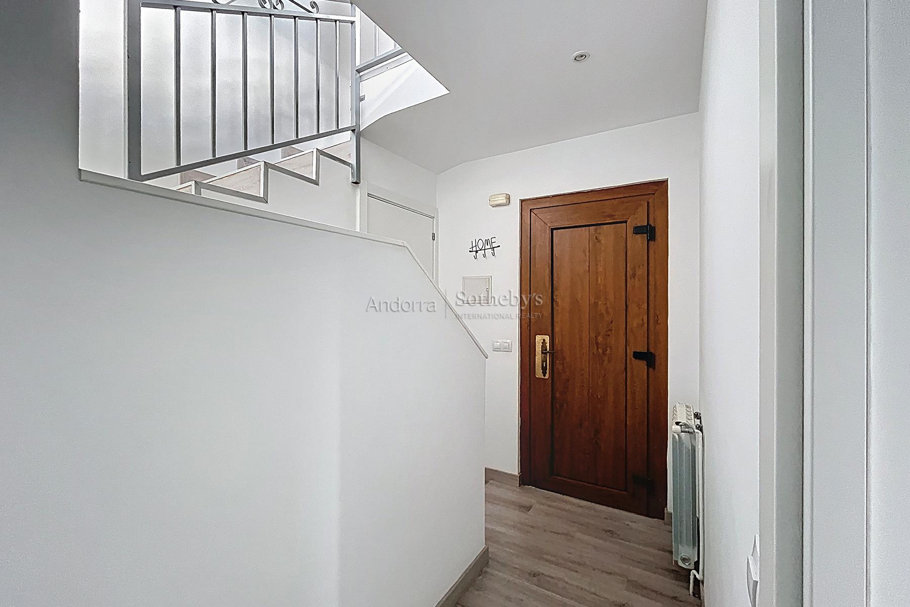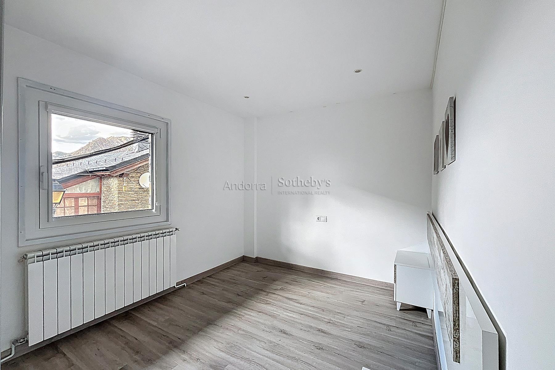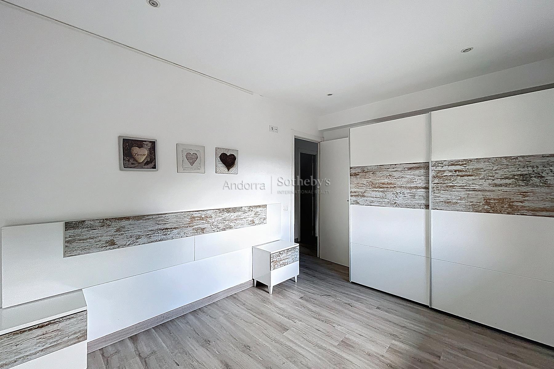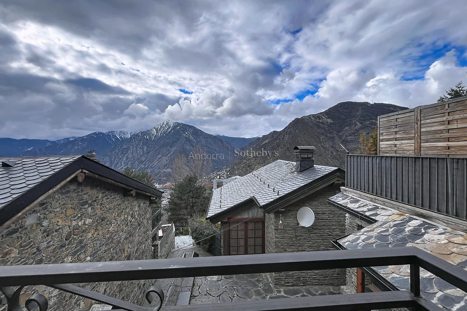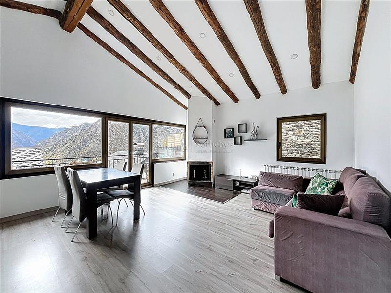 Aquesta propietat es troba en una urbanització molt tranquil·la i envoltada de natura, a pocs minuts en cotxe del centre d'Andorra la Vella i Escaldes. La propietat disposa de 115m2 distribuïts en 2 plantes. A la planta inferior hi trobem la zona de nit, aquesta distribuïda en 3 dormitoris dobles (un d'ells en suite) i un segon bany complet. A la planta superior hi ha la zona de dia distribuïda en una cuina oberta i un ampli saló menjador amb sortida a una terrassa de 9m2 amb unes vistes espectaculars a tota la vall, i molta llum natural gràcies a la seva orientació. Aquesta propietat disposa de traster en box.Característiques