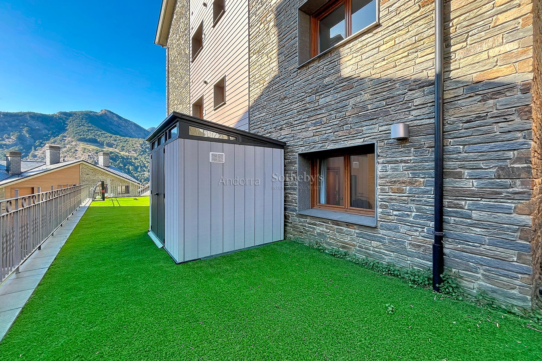這個迷人的底層公寓位於風景如畫、備受推崇的奧爾迪諾村,是安道爾其中一個最受喜愛的住宅區。該房產以其和諧融合寬敞舒適的室內空間與優秀的私人戶外區域而著稱。 房屋內部面積為112平方米,並附有一個約136平方米的L形私人花園,享有良好的日照。這個戶外空間提供理想的環境,適合放鬆或與家人朋友共度時光。花園內設有一個方便的戶外儲藏屋,而陽台則配備電動遮陽篷,能在烈日照射時提供陰影與額外舒適。 室內的布局合理,設有三間卧室和兩個浴室,以及一個寬敞明亮的客廳,充滿自然光。獨立的廚房空間寬敞,並有專用的洗衣區。房屋近期經過粉刷並進行了一些升級,例如可調光照明,營造出現代、溫暖且宜人的氛圍。 這個住宅的一大亮點是可以直接從底層通往花園,讓你享受住在擁有花園的家中的感覺,同時擁有公寓的便利。 此外,還配有雙人長車位和儲藏室,這些都在安道爾房地產市場上特別受到重視。 該物業距離學校、兒童公園、健身房、超市、餐廳及日常所需的所有基本服務都只有幾分鐘的步行距離。住宅區還提供多個公共空間,包括一個全サイズ足球場、一個籃球場和一個兒童遊樂場。 總而言之,這是一個極佳的機會,可以擁有一個寬敞、明亮並配備慷慨私家花園的房子,位於安道爾最有魅力的村莊之一,享受高品質的生活和獨特的地區特色。特征