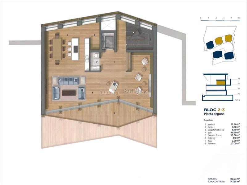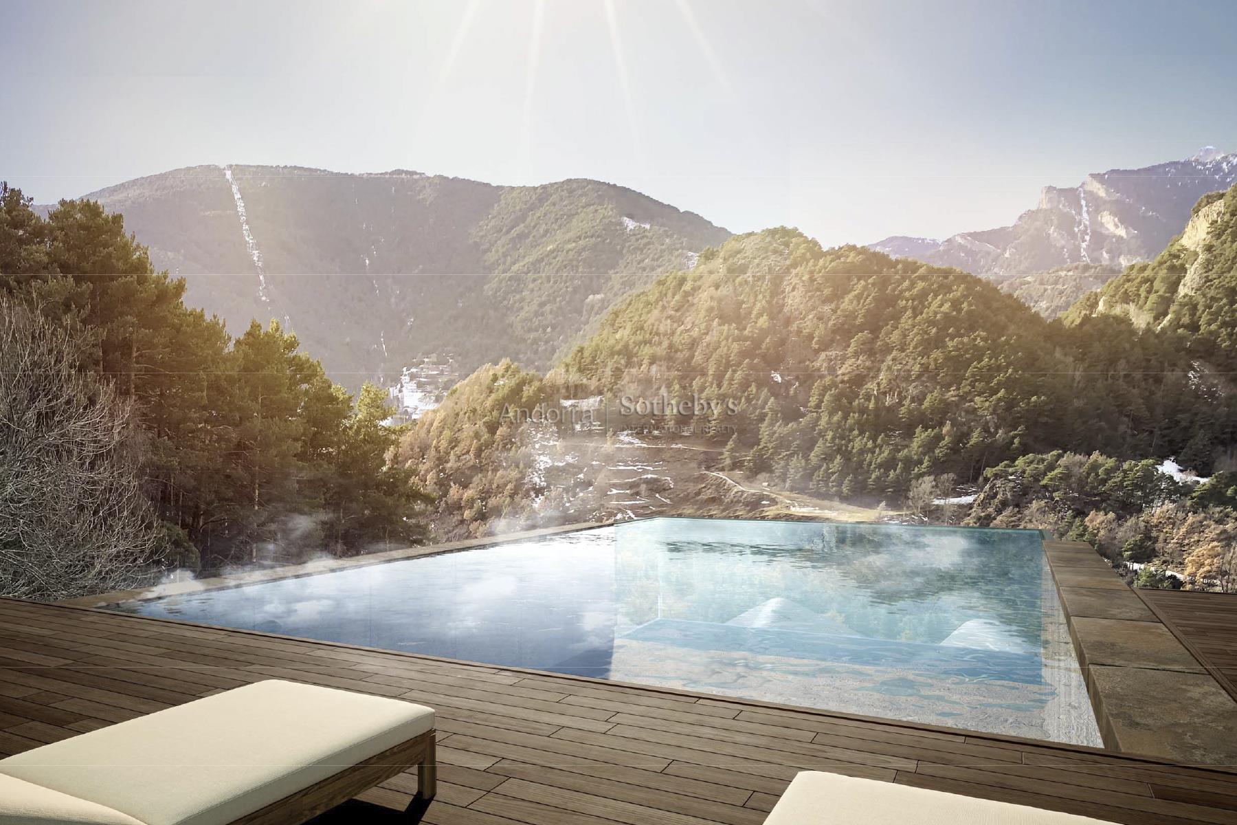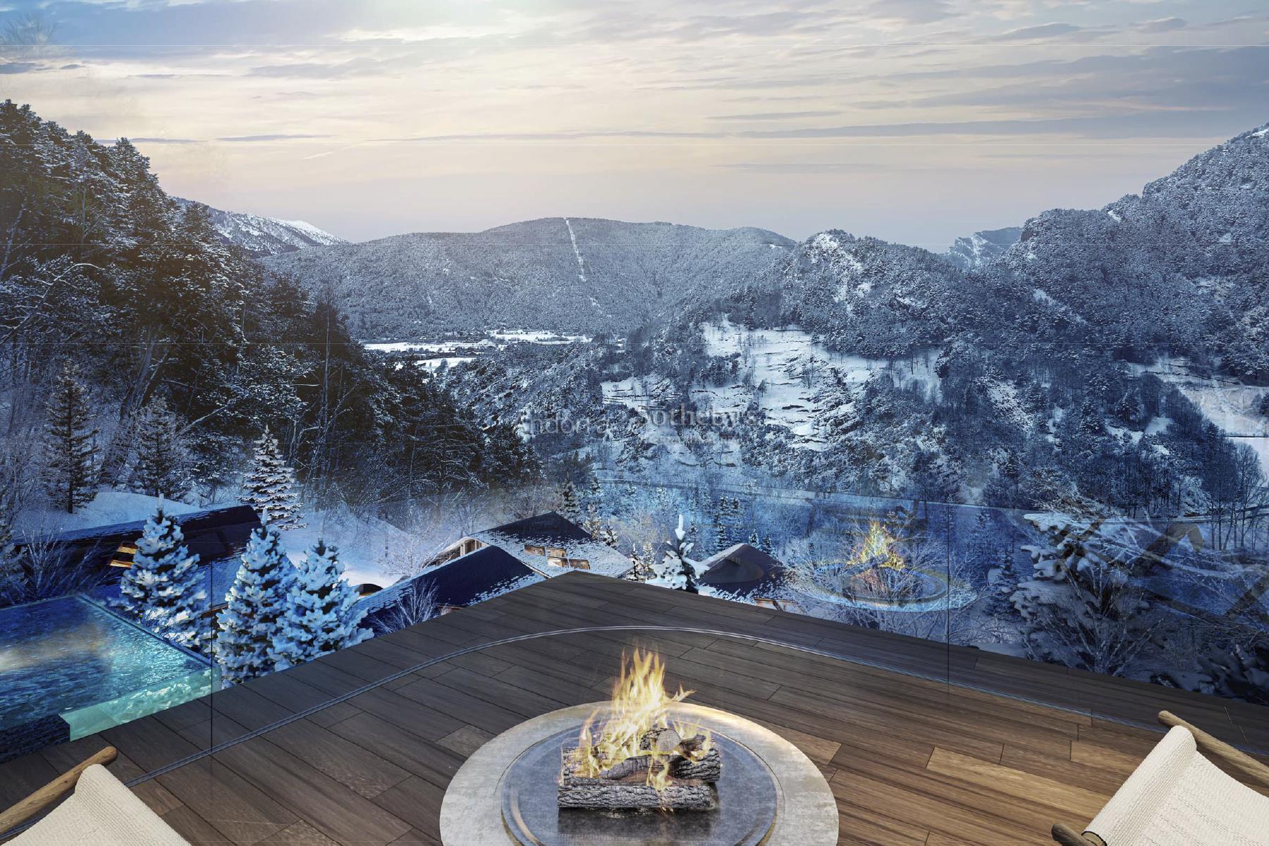 位於迷人的奧迪諾村的獨家雙層公寓,這個村莊是安道爾公國的首選之地,也是被指定為生物圈保護區的地區。這個令人驚嘆的房產是由著名建築事務所拉斐爾·德拉奧斯(Rafael De la-Hoz Arquitectes)設計的豪華新建項目的一部分,因其地理位置優越和奢華設計而著稱。 這是一套大約362平方米的全新建築物,包括兩個朝向最佳自然光的陽臺,同時可以欣賞奧迪諾及其山谷的壯麗景色。 一樓是休息區,有三間套房臥室,每間都配有完整浴室,以及房產的主人套房,配備衣帽間和完整浴室。所有臥室都通往陽臺。二樓設有一個大型廚房,中央島式設計,配備最新科技,並開放通往一個溫馨的用餐區,內有壁爐和陽臺通道。此外,這裡還設有一個起居室和一個圖書館,兩者也都能通往陽臺,還有一個廁所和一個洗衣區。頂樓閣樓下還設有一個多功能辦公區。 房產配備一個可容納3輛車的車庫。 裝修精美,質量上乘,房產的設計融合了現代元素,如大型玻璃窗,以及安道爾的傳統石材和木材建築風格,以最大程度融入環境,並保持國家的特色。特征