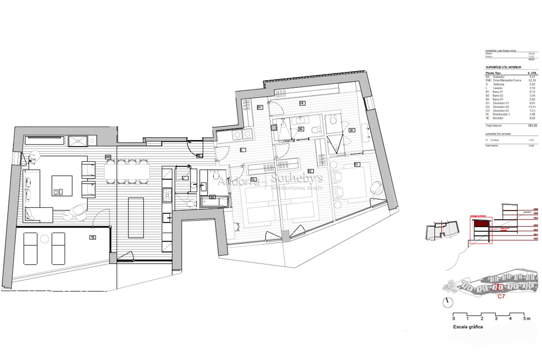歡迎來到您位於埃斯卡爾德斯的埃爾斯·維拉斯的新家,這裡優雅與自然完美融合。這個獨家新建公寓重新定義了現代生活的概念,提供一個溫馨的空間,環繞在優越的自然環境中。 該公寓距離熱鬧的安道爾城中心僅幾分鐘的路程,您可以立即享受各種服務、商店和休閒選擇。非常適合那些追求積極充實生活的人,無需放棄舒適與寧靜。 這處物業以可持續的設計理念而著稱,成為一個建築瑰寶,其結構擁有寬大的窗戶,為每個角落帶來自然光,營造出寧靜與純淨的氛圍。從公寓可以欣賞到埃斯卡爾德斯和周邊壯麗山脈的壯觀景色,以及其朝南的方向,讓整個白天都能享受到卓越的光照,從黎明到黃昏。 公寓設有三間套房、一間客廁、實用的洗衣房和可享有優越景觀的露台。其智能的佈局包括一個寬敞的餐廳,能夠直接通往露台,還有一個配備標誌性壁爐的廚房,優雅地整合了各個空間。 公寓主要面向東南方,是能源效率的典範,並配有花園和綠地,提供一個私密和放鬆的空間。 在這個獨特的物業中,發現安道爾生活的真正精髓,每個細節都經過精心打磨,以確保您享有最大的舒適和充滿和諧與美的生活。讓您的夢想成為現實,今天就諮詢這一卓越的房地產機會。特征