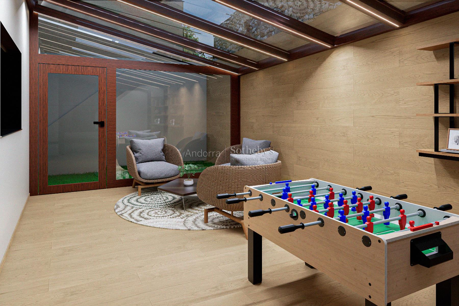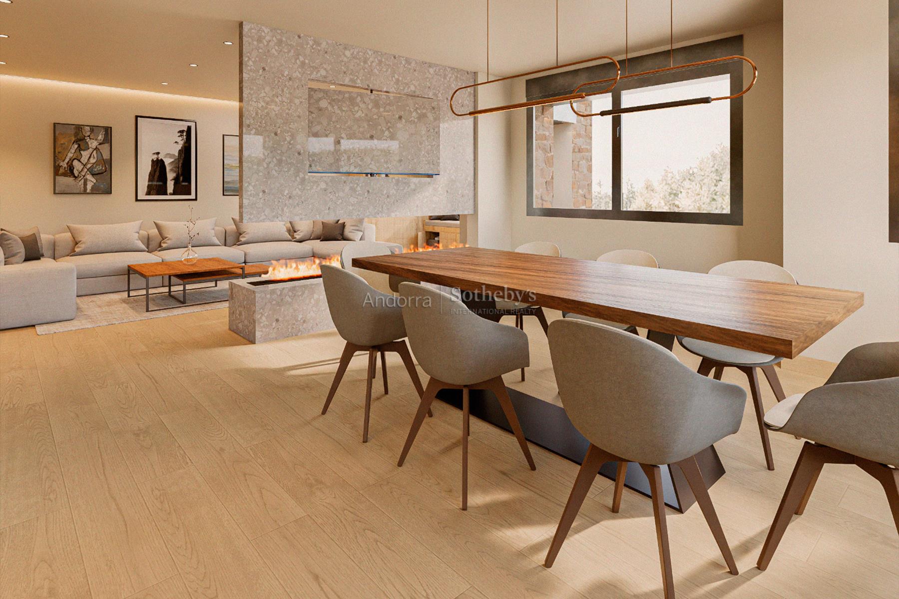 这座位于科塔尔斯·德恩坎普(Cortals d’Encamp)最尊贵地段的El Mollar 私人社区中的豪华别墅,完美融合了奢华、舒适与自然。 建筑面积约 300平方米,整体设计兼具宽敞感、温馨感与功能性,采用高端材料与现代布局,全年皆可享受理想的居住体验。 别墅配有 120平方米露台,可欣赏到山谷与群山的壮丽全景,在这里可尽情享受比利牛斯山脉的宁静与清新空气。 车库面积近 150平方米,可容纳六辆以上车辆,并设有挑高空间,另可改造为独立客房或公寓区域。 室内空间布局清晰,区分生活与休息区域: 日间区域(68平方米): 宽敞明亮的客厅配备优雅壁炉,三层玻璃窗提供卓越的隔热与隔音性能。 夜间区域(70平方米): 注重私密与舒适,卧室宽敞,设有夹层与充足储物空间。 住宅还设有洗衣房、多功能室,并已全面翻新与精装修,可立即入住。 这是一处极具代表性的豪华住宅,专为追求自然、设计感与现代舒适生活的买家打造,完美诠释了安道尔山地生活的高端品质。特征