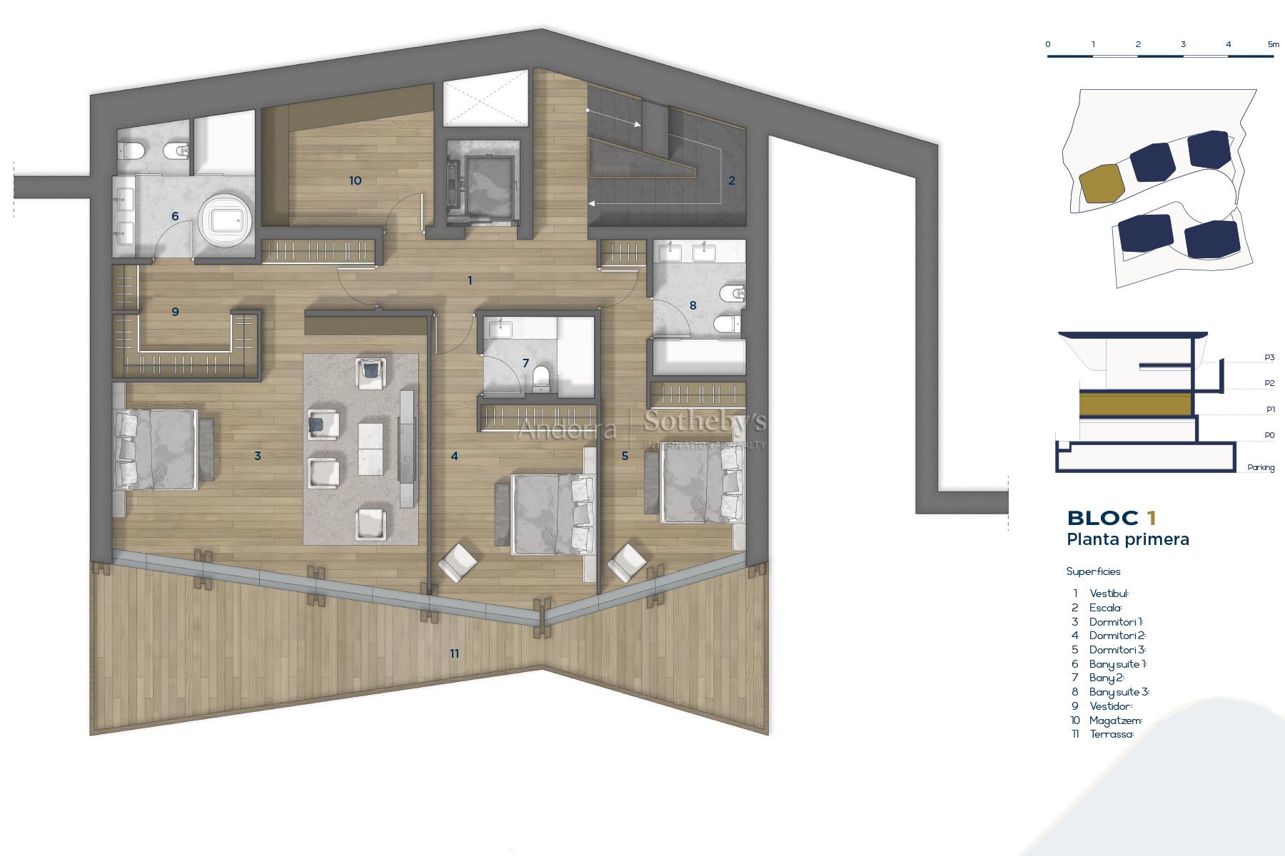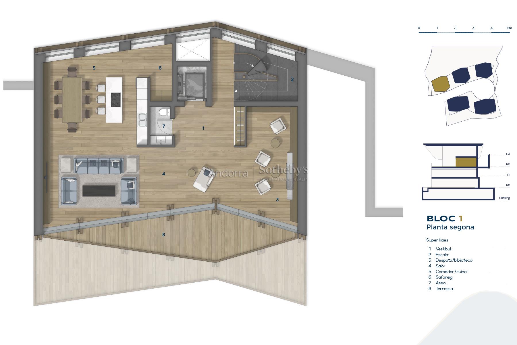 Exclusive chalet for sale in the charming village of Ordino, the first destination in the Principality of Andorra designated as a Biosphere Reserve. This sensational property is part of a new development that stands out for its privileged location as well as its luxurious design, created by the prestigious architecture firm Rafael De La-Hoz Arquitectos. It is a newly constructed property of approximately 588 m², which includes multiple terraces optimally oriented to provide maximum exposure to natural light while enjoying the magnificent views of Ordino and its valleys. The ground floor is devoted to relaxation and features an incredible indoor pool with a spa area and gym, as well as a cinema room. This floor also includes two double en-suite bedrooms with full bathrooms, a guest restroom, and a storage area. On the first floor, the relaxation area continues with two en-suite bedrooms with full bathrooms, and the master suite of the property, complete with a walk-in closet and full bathroom. All bedrooms have access to the terrace. The second floor consists of a large kitchen with a central island, equipped with the latest technologies, and open to a cozy dining area with access to the terrace. This area also includes a living room and a library, both of which have access to the terrace, a guest restroom, and a laundry area. On the top floor, under the roof, there is a functional office. The finishes are elegant and of the highest quality, and the design of the property combines modern elements, such as large windows, with traditional Andorran architecture in stone and wood to integrate seamlessly into the environment and maintain the essence of the country.Features