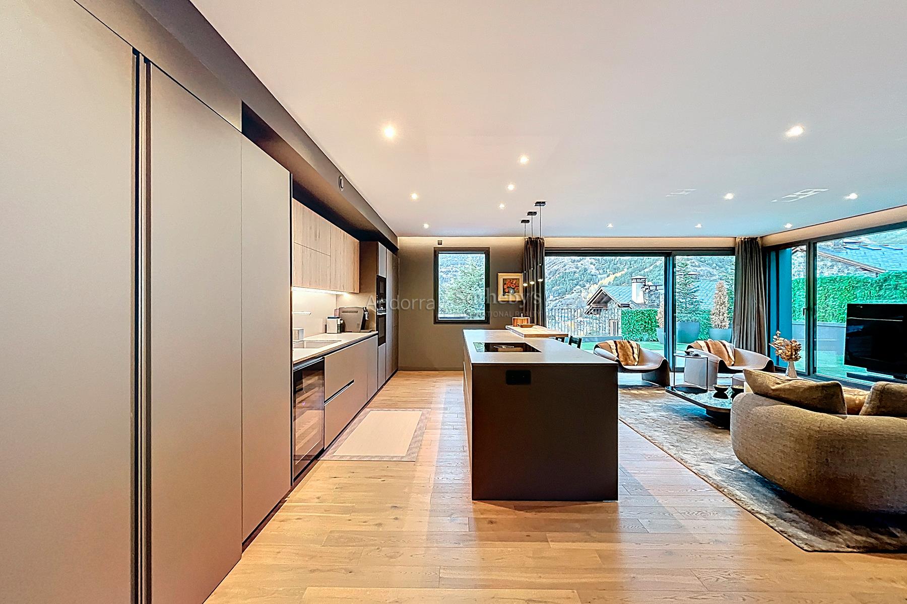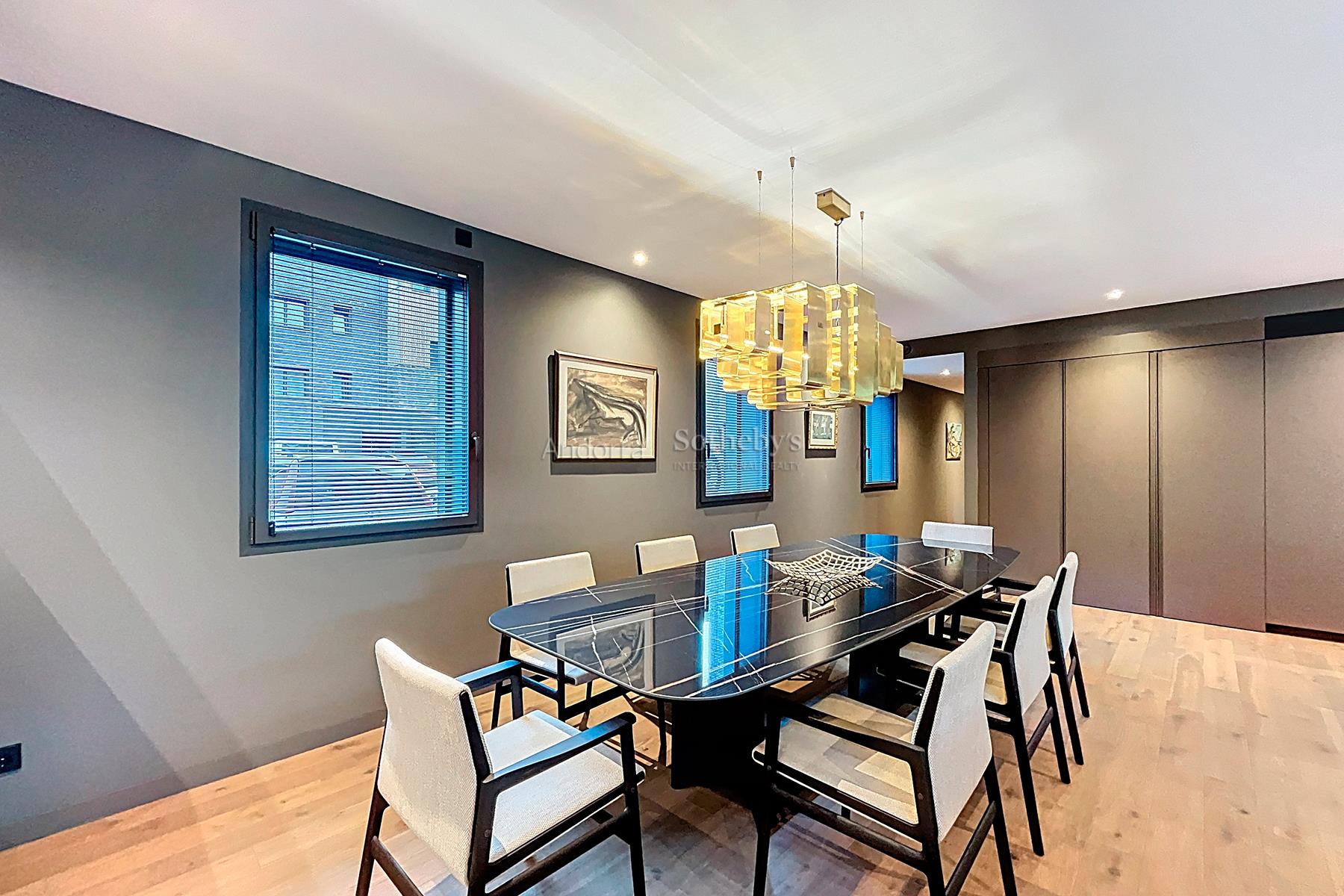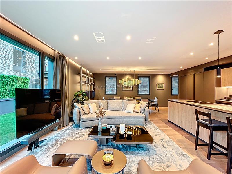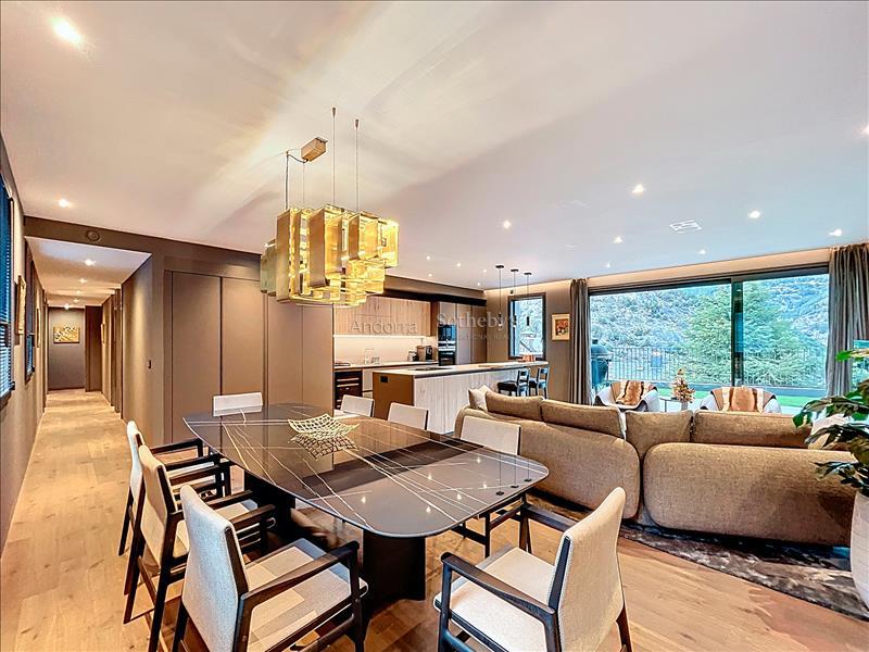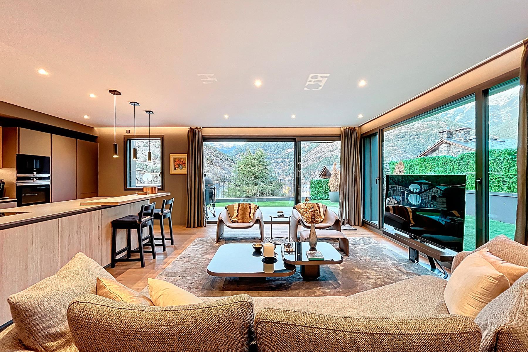 Located just five minutes on foot from the center of Ordino and close to schools, this elegant and spacious 328 m² ground floor offers an exclusive lifestyle in a dreamlike setting. It features 162.92 m² of interior space with a modern and functional design, and 165.83 m² of outdoor area, including a 24.35 m² terrace and a 134.01 m² garden. The living area, wide and bright, combines living room, dining room, and kitchen in a single space with direct outdoor access, promoting an open lifestyle connected to nature. It has three bedrooms, including a suite with a walk-in closet, as well as two contemporary-style full bathrooms and a guest toilet with an integrated laundry area. The 49.03 m² garage can accommodate three or four vehicles and provides storage space. High-quality materials, careful construction, and spectacular mountain views of Vall d’Ordino give this property a unique and exclusive character. The garden, equipped with a relaxing jacuzzi, is the perfect space to enjoy moments of tranquility, relaxation, and socializing in a private and beautiful environment.Features