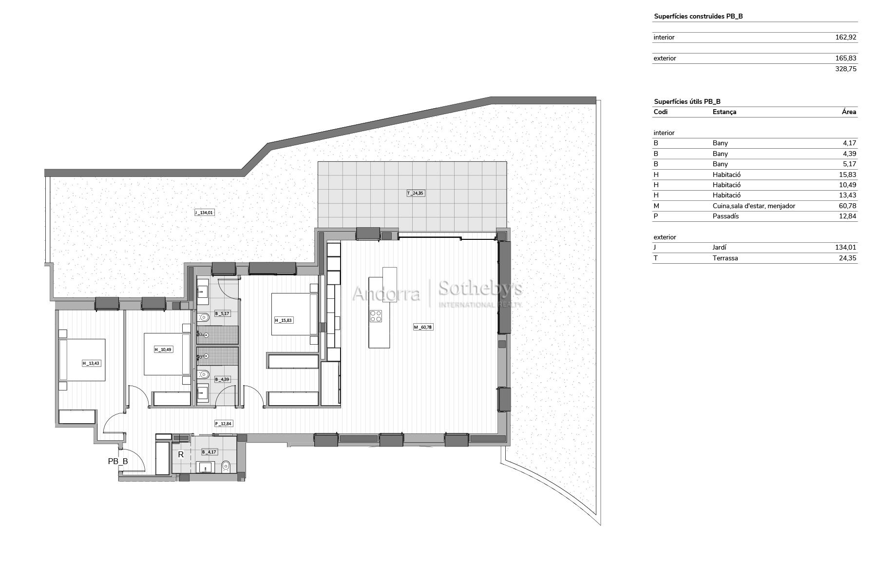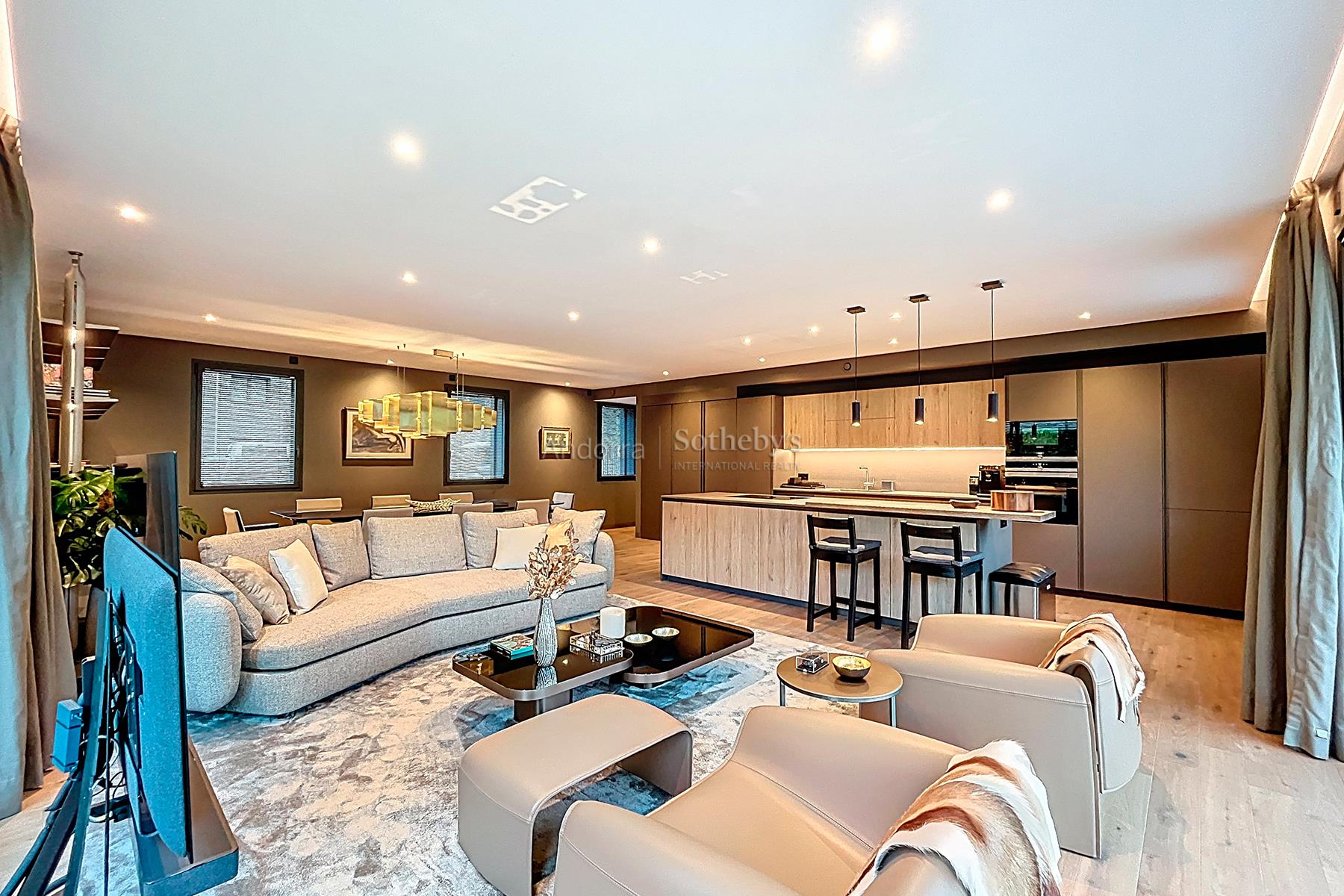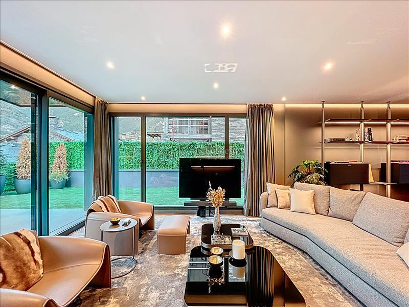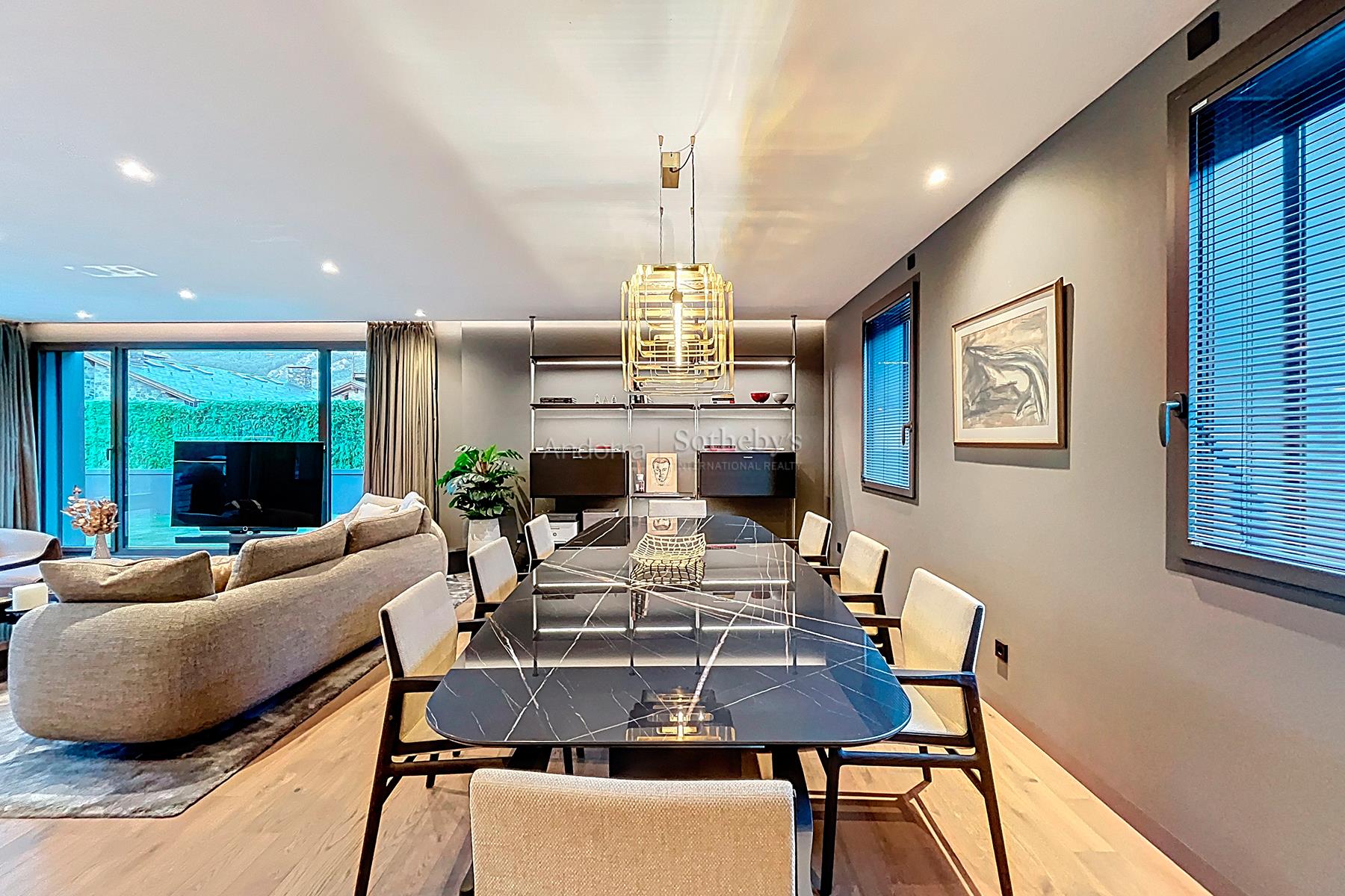 Located just five minutes on foot from the center of Ordino and close to schools, this elegant and spacious 328 m² ground floor offers an exclusive lifestyle in a dreamlike setting. It features 162.92 m² of interior space with a modern and functional design, and 165.83 m² of outdoor area, including a 24.35 m² terrace and a 134.01 m² garden. The living area, wide and bright, combines living room, dining room, and kitchen in a single space with direct outdoor access, promoting an open lifestyle connected to nature. It has three bedrooms, including a suite with a walk-in closet, as well as two contemporary-style full bathrooms and a guest toilet with an integrated laundry area. The 49.03 m² garage can accommodate three or four vehicles and provides storage space. High-quality materials, careful construction, and spectacular mountain views of Vall d’Ordino give this property a unique and exclusive character. The garden, equipped with a relaxing jacuzzi, is the perfect space to enjoy moments of tranquility, relaxation, and socializing in a private and beautiful environment.Features