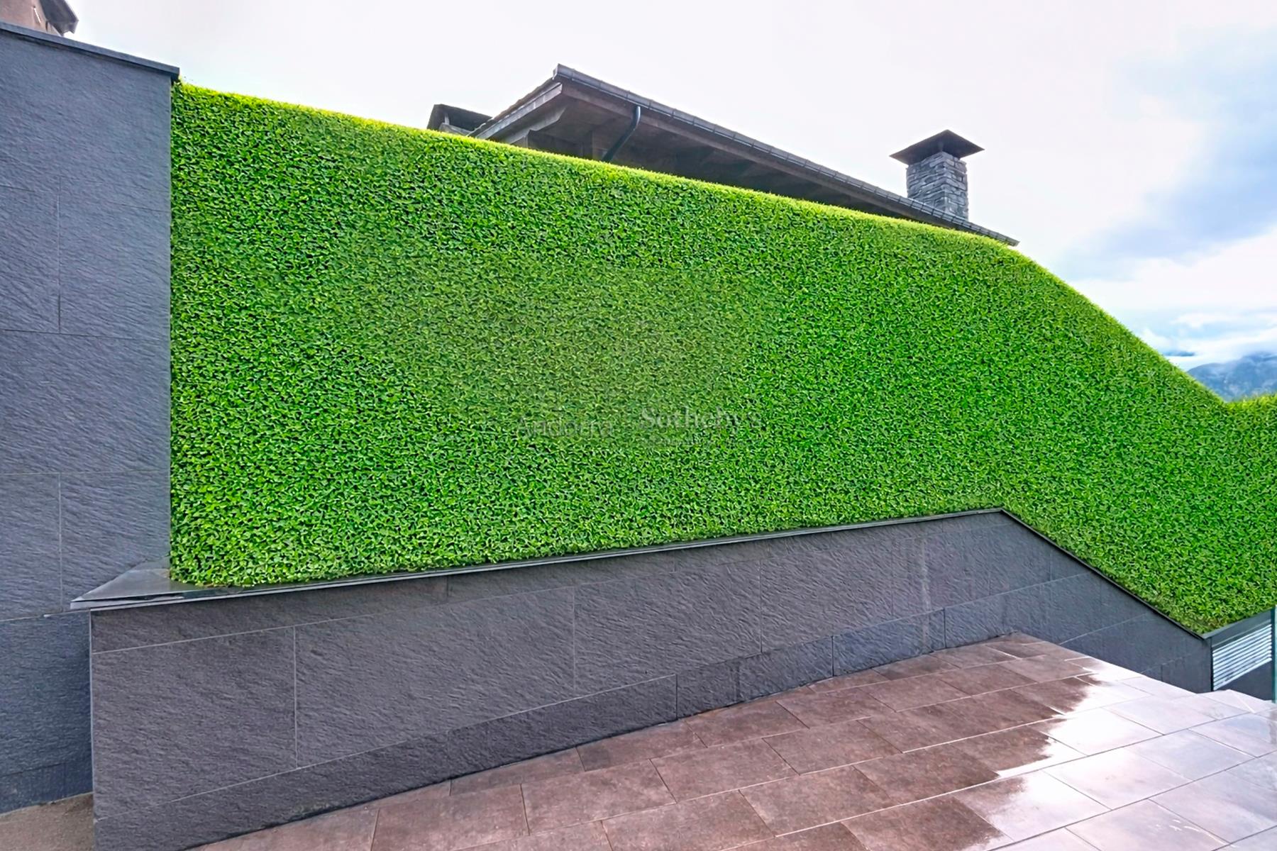 Discover this exclusive villa with captivating views in Escaldes, a unique property that combines luxury, space, and comfort in a privileged location. With 1,339 m² of constructed area on a 580 m² plot, this villa of five floors plus a basement offers a modern and functional design with living areas recently renovated just three months ago using top-quality materials, such as a Bulthaup kitchen. It features 135 m² distributed across several terraces, 137 m² of garden, and outdoor areas perfect for enjoying. The residential area, located on the ground floor, combines open spaces and high ceilings with an Egyptian marble staircase decorated with an illuminated railing connecting all floors. The living-dining room, with a gas fireplace and access to a large garden terrace with a barbecue area, creates a cozy and sophisticated atmosphere. The recently renovated kitchen, with a central island and pantry area, invites unforgettable gastronomic moments. On the first floor, you'll find the sleeping quarters, featuring a spacious reading area, three double bedrooms with terraces, and two bathrooms with hydromassage showers, one of which has access to a small garden area. The master suite on the second floor includes a walk-in closet, two bathrooms (one for each occupant), advanced technologies, hydromassage showers, and a bathtub, all with views, as well as a large private terrace. Below the residential levels, in basement -1, there is a laundry room with an 8 m² outdoor patio, a spacious 135 m² gym room with pre-installation for a pool (to expand if desired), as well as an adjoining room for a sauna, Hammam, or other wellness spaces. It also features a zone with four sinks. Additionally, there is a 45 m² solarium accessible via an outdoor staircase, ideal for relaxing and enjoying peaceful moments. In basement -2, a spacious 147 m² open-plan room can be adapted as a game room, cinema, or entertainment area, complemented by a small independent apartment designed for guests or staff, with its own entrance to ensure privacy and comfort. The garage, located on basement -3, can accommodate up to 10 vehicles and includes water tanks, an equipment room, and a guest bathroom. It is noteworthy that the basement levels, distribution stairs, and gym area will undergo a redecorating renovation, as shown in the renderings, achieving a fresh, modern environment aligned with the property's design. Completing the amenities, the property features underfloor heating, air source heat pump, air conditioning, security alarm system, two elevators — one connecting all floors and another reaching the gym and leisure area — and the latest technology systems for your comfort and safety.Features