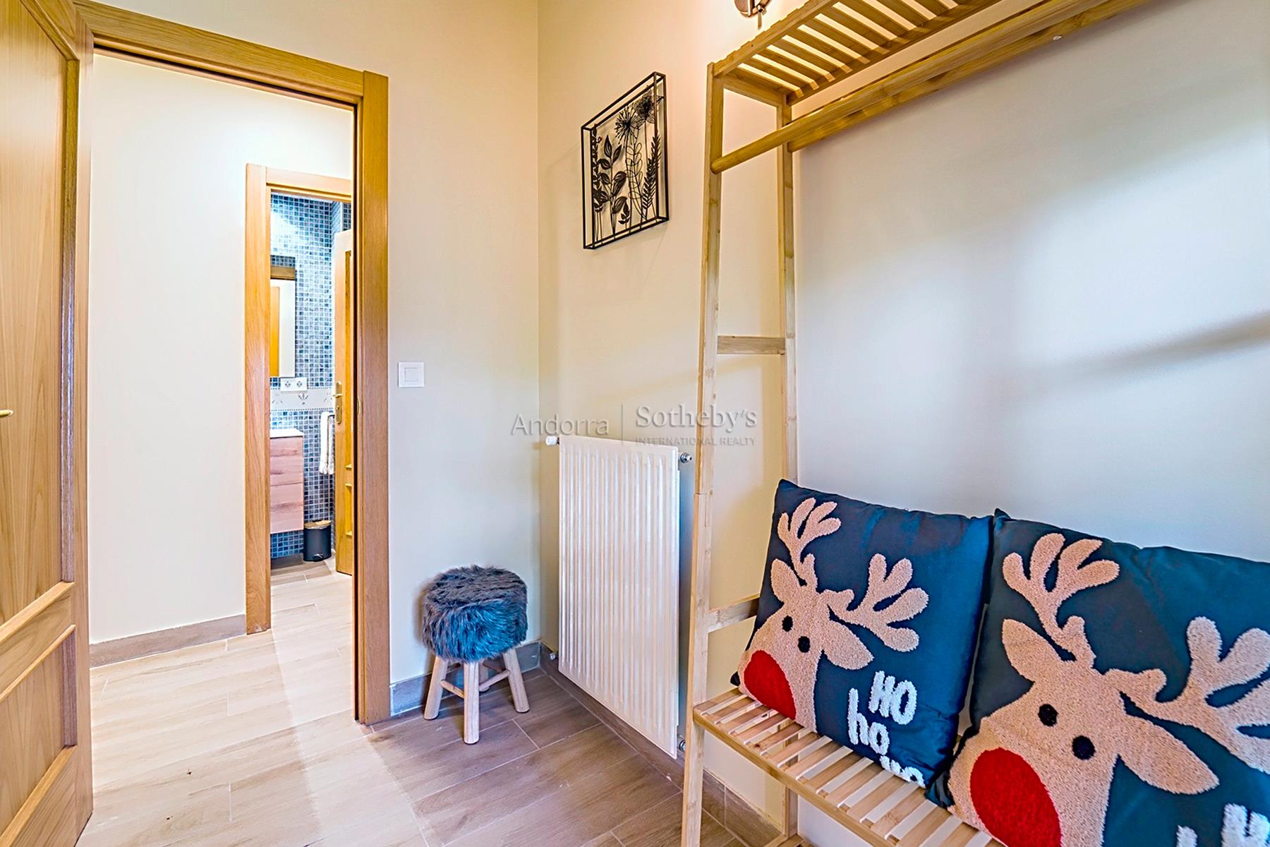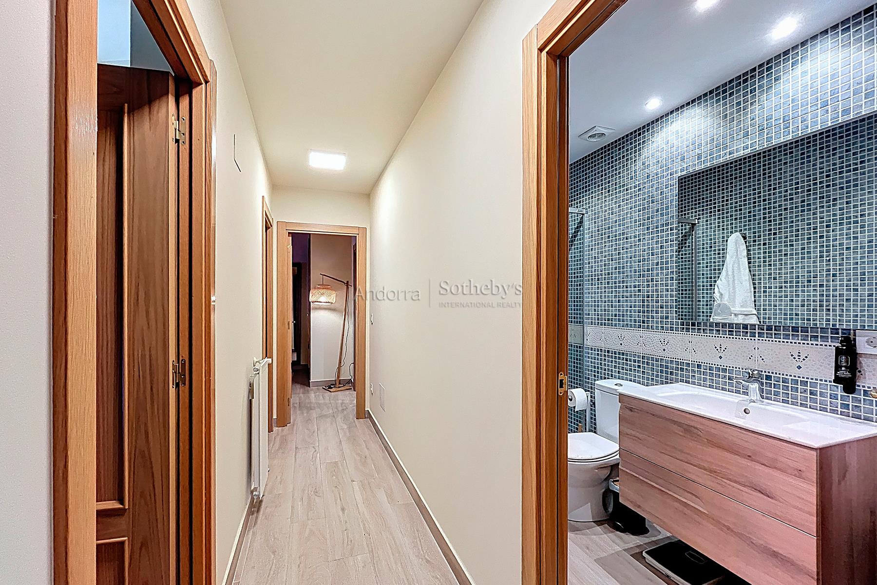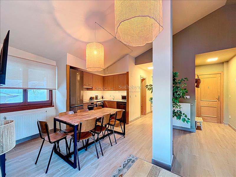 Descubre este acogedor piso situado en Soldeu, con una superficie de 81,81 m² y una distribución cómoda y funcional. Se trata de una vivienda que combina impresionantes vistas y confort moderno para disfrutar de la naturaleza y la vida diaria. El interior del piso se organiza en un espacio diáfano que acoge la cocina y el salón-comedor, creando un ambiente acogedor y práctico, ideal para compartir y relajarse. Dispone de tres habitaciones, una en suite, una doble y una individual, perfectas para toda la familia, y dos baños completos, uno con ducha y otro con bañera, que ofrecen comodidad y funcionalidad. Los detalles rústicos, como las paredes de madera en algunas áreas, y el parquet, aportan un toque de calidez y encanto tradicional a la vivienda. Además, cuenta con doble trastero, ideal para guardar material deportivo, y una plaza de parking incluida, facilitando la comodidad diaria. Situado a solo unos minutos de las magníficas rutas de senderismo y ciclismo de la Vall d’Incles, y de las pistas de esquí de Grandvalira, este piso está perfectamente pensado para amantes de la naturaleza y el deporte. No dejes pasar esta oportunidad de vivir en un entorno tranquilo, rodeado de belleza natural y con todas las comodidades al alcance.