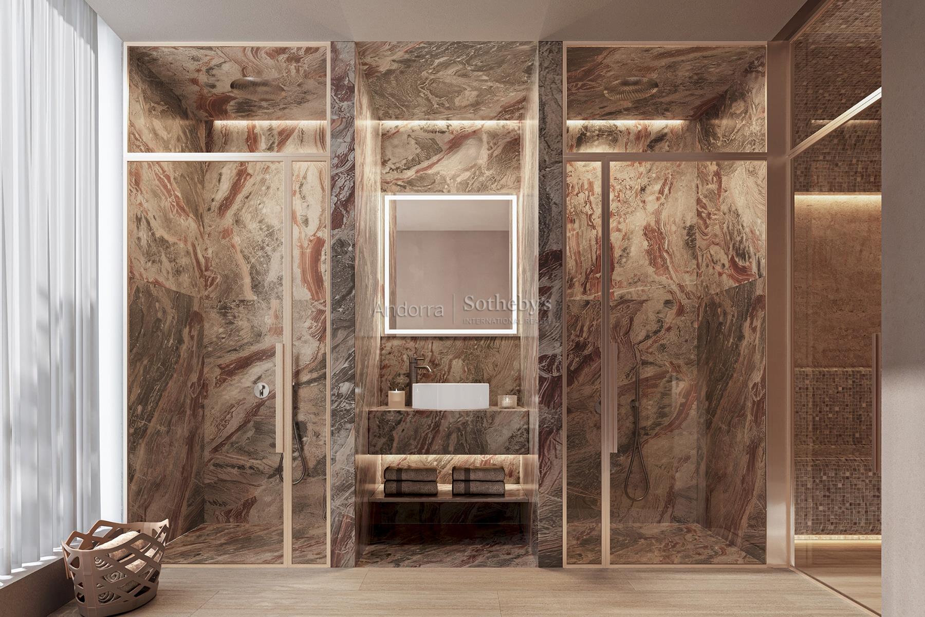 Откройте для себя этот впечатляющий недавно построенный двухквартирный дом, расположенный в Кан-Диуменге, Эскальдес-Энгордань. Эта роскошная резиденция имеет общую площадь 1001 м2, включая 368 м2 террас, садов и веранд, предназначенных для наслаждения прекрасными видами и природой. Вилла с элегантным архитектурным дизайном занимает пять этажей, включая подвал и полуподвал, которые предлагают просторные и функциональные помещения. На первом этаже вы найдете открытую среду, объединяющую гостиную, столовую и кухню с прямым выходом на террасу и в сад. На этом же этаже есть туалет, гардеробная и практичная прачечная. На этажах, отведенных для отдыха, расположены три спальни с ванными комнатами, одна из которых имеет выход на улицу, расположенные на первом этаже. На втором этаже находится величественная главная спальня с гардеробной, ванной комнатой и отдельной террасой, создающей интимное и комфортное пространство. Цокольный этаж представляет собой настоящий оазис релаксации и благополучия со спа-зоной, включающей хаммам, сухую сауну, зал для йоги, тренажерный зал, бассейн и джакузи. У нас также есть гардеробная с душем и туалетом для максимального комфорта. На цокольном этаже -2 расположен большой гараж вместимостью до шести автомобилей, кладовая, дополнительная гардеробная, техническое помещение и удобный подъезд к дому. Ориентировочная дата завершения строительства — третий квартал 2028 года. Это уникальная возможность насладиться кратчайшим путем к роскошной жизни в мирной и привилегированной обстановке. Не упустите возможность приобрести свой новый дом в Кан Диуменге.Особенности