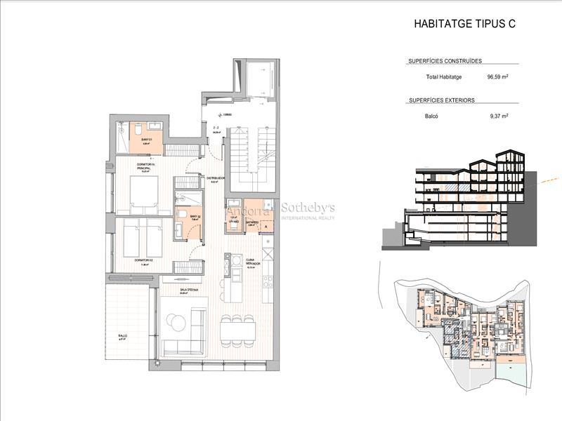 Эксклюзивная квартира в новостройке в Эскальдес-Энгордани, расположенная между жилыми районами Са-Кальма и Эльс-Виларс, в тихом и удобном месте. Общая площадь составляет 96,59 м², планировка включает две спальни с ванными комнатами (en suite), а также гостевой санузел. Гостиная-столовая с кухней открытого типа — современное и функциональное пространство с прямым выходом на балкон площадью 9,37 м², идеально подходящий для отдыха. В квартире также предусмотрена отдельная прачечная, современные отделочные материалы и продуманная планировка для максимального комфорта. Парковочное место и кладовая не включены в стоимость. Покупатель может выбрать гаражный бокс в соответствии со своими потребностями. Отличная возможность для проживания или инвестиций в одном из самых престижных районов Эскальдес-Энгордани.Особенности