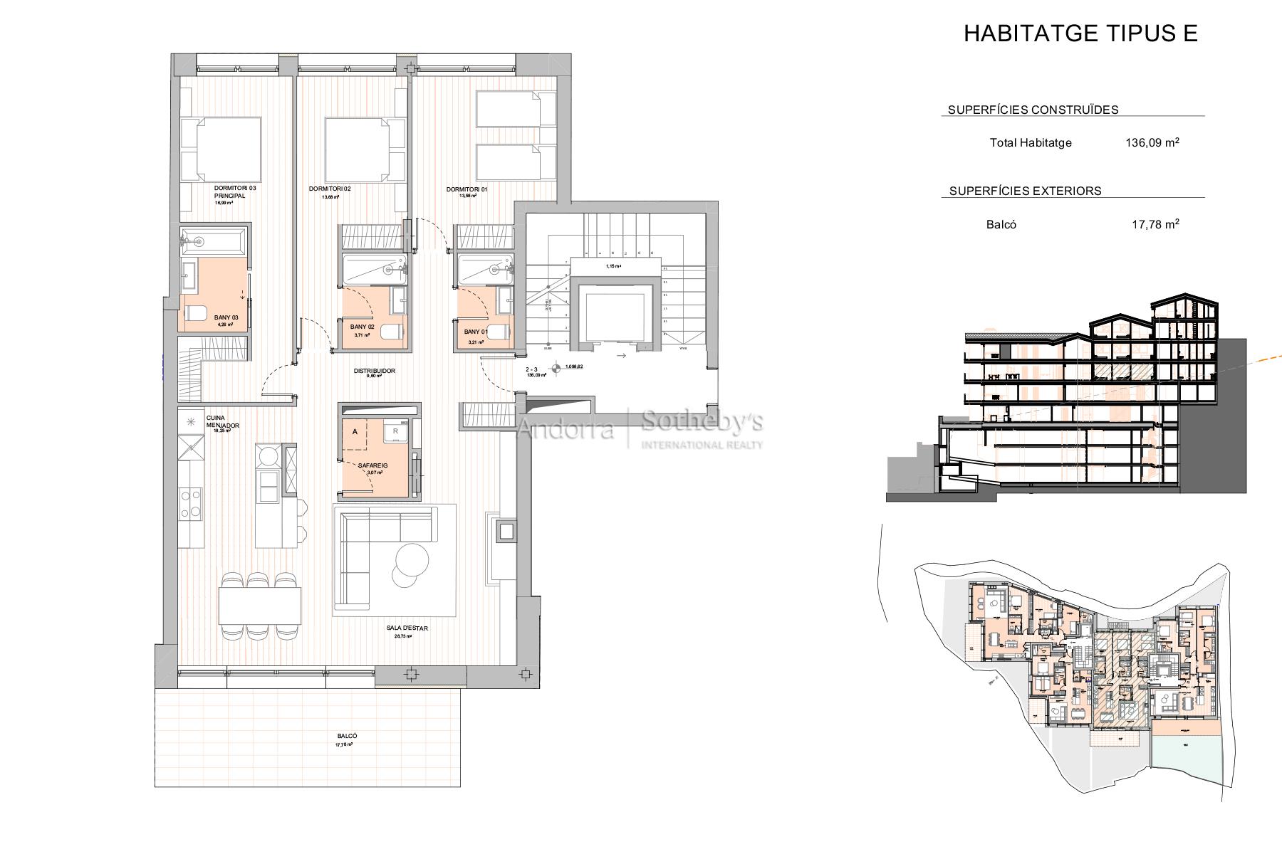 Эксклюзивная квартира в новостройке на продажу в Эскальдес-Энгордани, расположенная в тихом и хорошо связанном жилом районе. Общая площадь составляет 136,09 м². Планировка просторная и функциональная: три спальни, две из которых с ванными комнатами en suite, а также третья спальня с отдельной полноценной ванной комнатой, расположенной вне спальни. Гостиная-столовая с кухней открытого типа — светлое и современное пространство с прямым выходом на балкон площадью 17,78 м², идеально подходящий для отдыха. В квартире также предусмотрена отдельная прачечная, современные отделочные материалы и продуманная планировка для максимального комфорта и уединения. Парковочное место и кладовая не включены в стоимость. Покупатель может выбрать гаражный бокс в соответствии со своими потребностями. Отличная возможность для проживания или инвестиций в одном из самых востребованных районов Эскальдес-Энгордани.Особенности