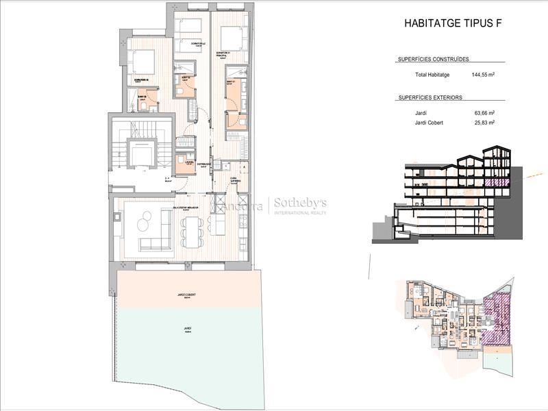 Эксклюзивная квартира в новостройке на продажу в Эскальдес-Энгордани, с общей площадью 144,55 м², спроектированная для максимального комфорта, простора и уединения. Квартира включает три спальни с ванными комнатами en suite, каждая с полноценной ванной, а также гостевой санузел. Гостиная-столовая с кухней открытого типа — светлое и современное пространство с прямым выходом в частные сады, включающие крытый сад площадью 25,83 м² и открытый сад площадью 63,66 м², идеально подходящие для отдыха на свежем воздухе в любое время года. В квартире также предусмотрена отдельная прачечная, современные отделочные материалы и продуманная планировка. Парковочное место и кладовая не включены в стоимость. Покупатель может выбрать гаражный бокс в соответствии со своими потребностями. Прекрасная возможность для проживания или инвестиций в одном из самых престижных районов Эскальдес-Энгордани.Особенности