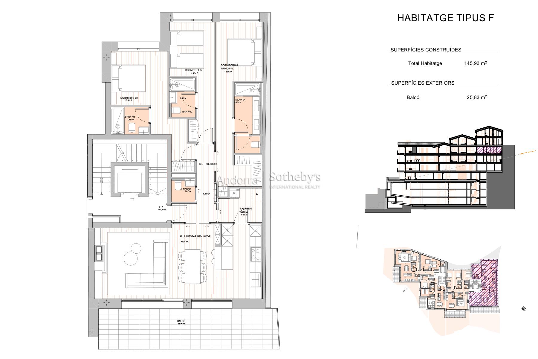 Эксклюзивная квартира в новостройке на продажу в Эскальдес-Энгордани, общей площадью 145,93 м², спроектированная для комфорта, естественного освещения и элегантности в тихом и удобном жилом районе. Квартира включает три спальни с ванными комнатами en suite, каждая с полноценной ванной, а также гостевой санузел. Гостиная-столовая с кухней открытого типа создаёт современное и функциональное пространство, с естественным светом и прямым выходом на балкон площадью 25,83 м², идеально подходящий для отдыха на свежем воздухе. В квартире также есть камин, создающий уютную атмосферу в холодные месяцы. Кроме того, предусмотрена отдельная прачечная и современные отделочные материалы, продуманная планировка для максимального комфорта и приватности. Парковочное место и кладовая не включены в стоимость. Покупатель может выбрать гаражный бокс по своему усмотрению. Прекрасная возможность для проживания или инвестиций в одном из самых востребованных районов Эскальдес-Энгордани.Особенности