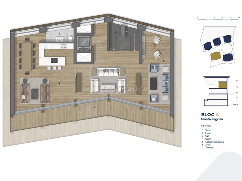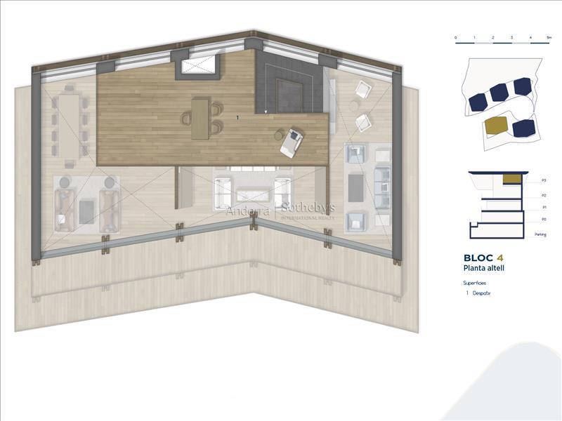 Эксклюзивное шале на продажу в очаровательной деревне Ордино, первом направлении в Княжестве Андорра, названном Резервом биосферы. Эта сенсационная недвижимость является частью нового проекта строительства, который отличается привилегированной локацией и роскошным дизайном, разработанным престижной архитектурной компанией Rafael De la-Hoz Arquitectes. Это новостройка общей площадью около 669 м², включает в себя несколько террас, оптимально ориентированных для обеспечения максимального естественного освещения и наслаждения великолепными видами на Ордино и его долины. Первый этаж предназначен для отдыха и включает в себя зону спа и тренажерный зал, а также кинозал. На этом этаже находятся две двухместные спальни с полноценными ванными, туалет и кладовая, а также просторная терраса. На втором этаже продолжается зона отдыха, с двумя спальнями с ванными и главной спальней с гардеробной и ванной. Все спальни имеют выход на террасу. На третьем этаже находится большая кухня с центральным островом, оборудованная последними технологиями и открытая на уютную столовую с выходом на террасу. В этой зоне также есть гостиная и библиотека, оба помещения также имеют выход на террасу, туалет и прачечная. На верхнем этаже, с наклонными потолками, располагается функциональный офис. Недвижимость имеет 8 парковочных мест по 11,5 м² каждое, всего около 706 м² парковочной зоны. Отделка является элегантной и высочайшего качества, а дизайн недвижимости сочетает современные элементы, такие как большие витражи, с классической андоррской архитектурой из камня и дерева, чтобы лучше вписываться в обстановку и сохранить суть страны.Особенности