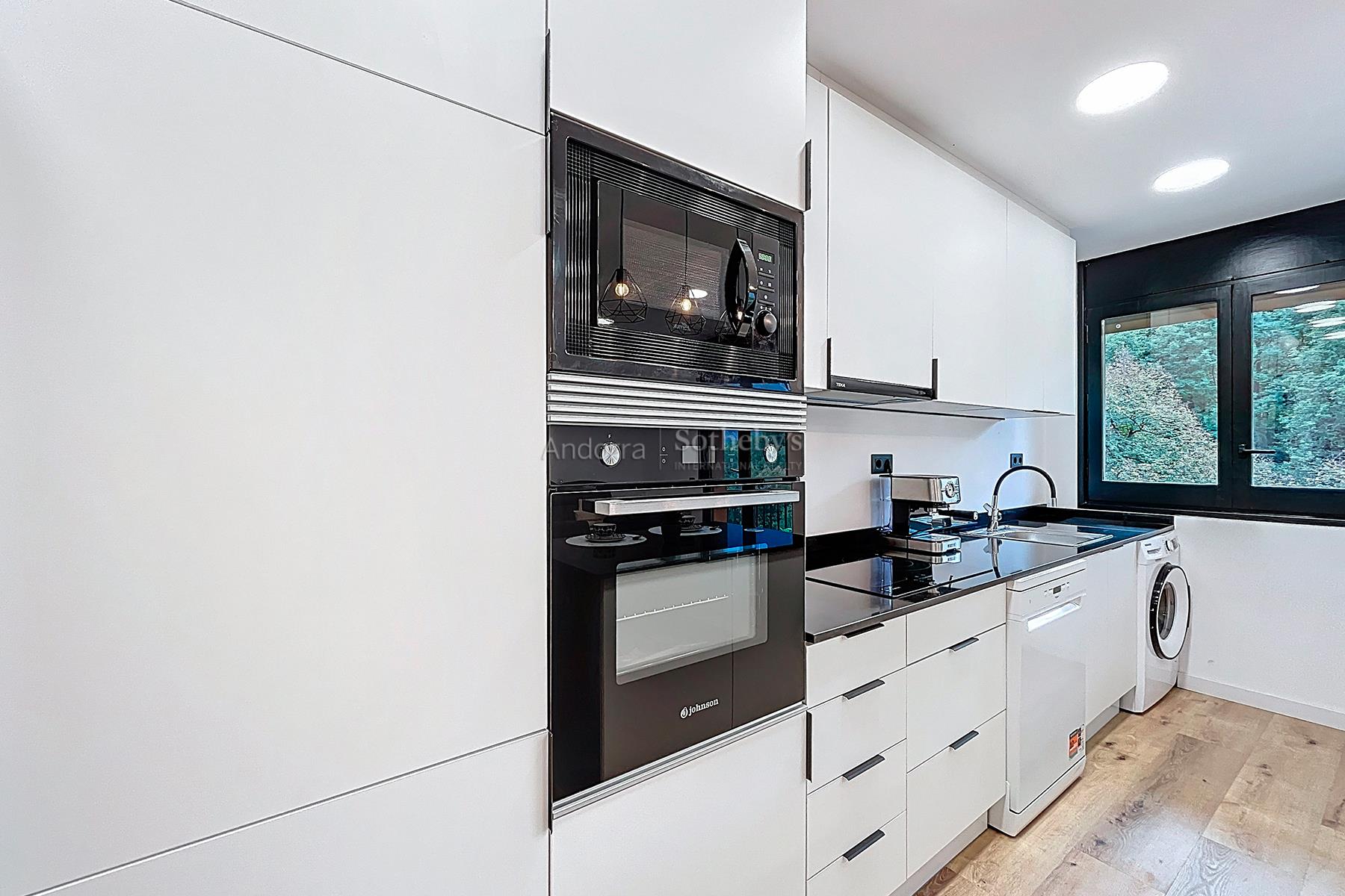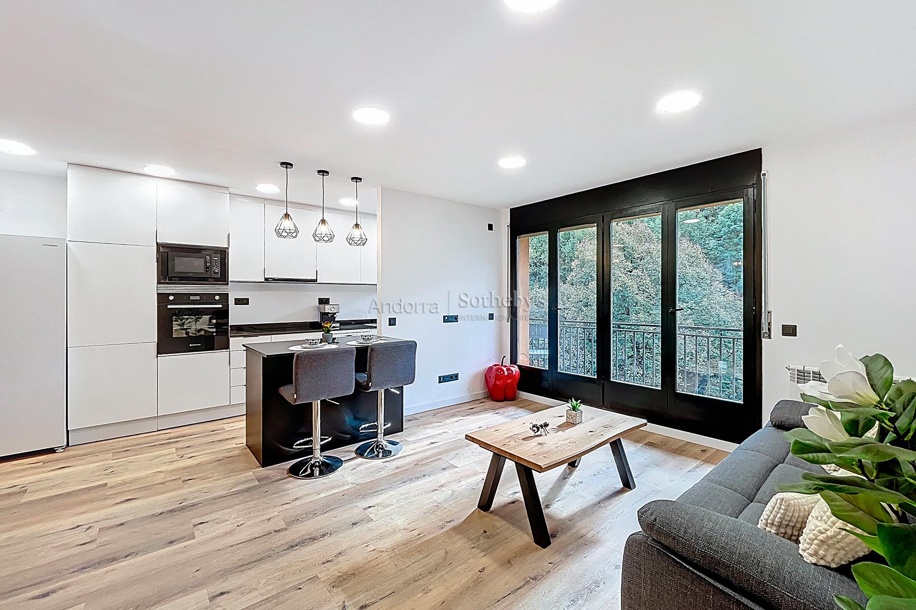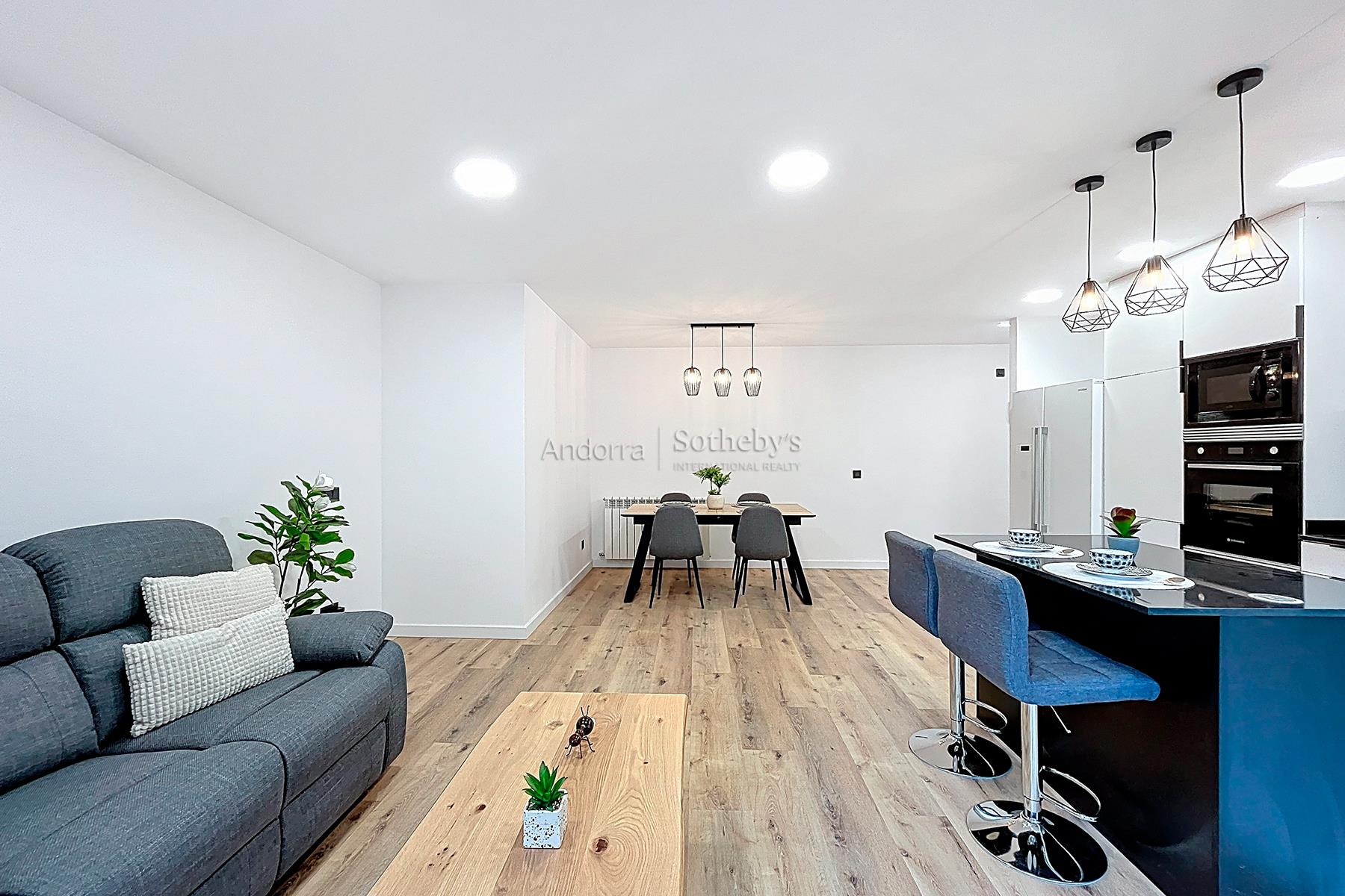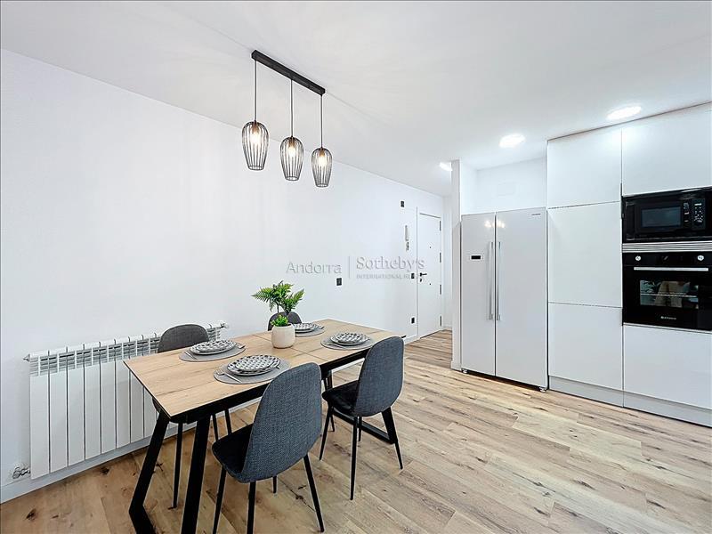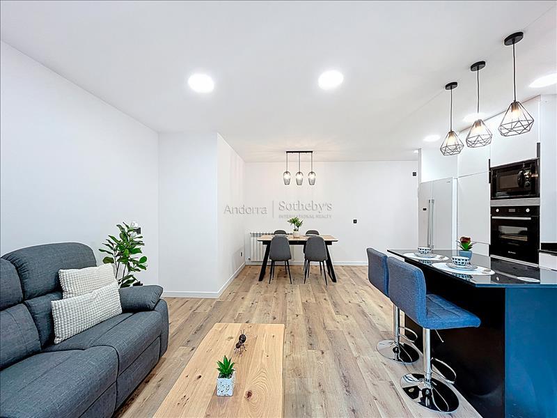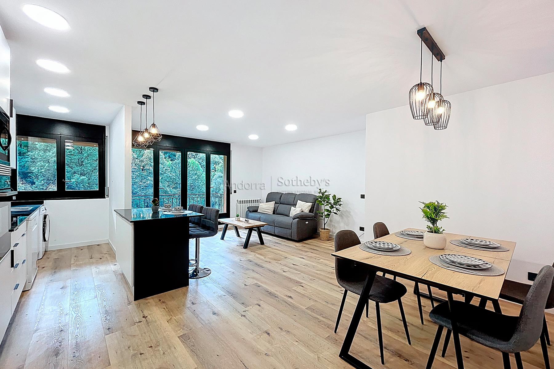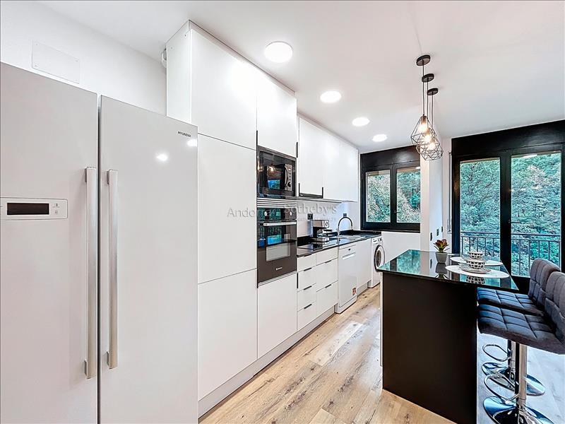 Полностью отремонтированная и полностью оборудованная квартира площадью 78 м² на продажу, расположенная в тихом и живописном районе Энголастерс, всего в нескольких минутах от центра Эскальдес-Энгордань. Недвижимость сочетает современный дизайн, функциональность и комфорт в уникальной обстановке. Квартира включает две двухместные спальни и две ванные комнаты, идеально спланированные для обеспечения удобства и уединения. В гостиной зоне — просторная гостиная-столовая с открытой кухней, светлое и уютное пространство с прямым выходом на террасу площадью 8 м², где можно насладиться видом на горы и спокойствием. Квартира, полностью меблированная и оборудованная, также включает парковочное место площадью 17 м² и ��ладовую, обеспечивая функциональность и дополнительное пространство для хранения. Идеальный вариант для тех, кто ищет современное, светлое и готовое к проживанию жильё в природной среде, недалеко от всех удобств Эскальдес-Энгордань.Особенности