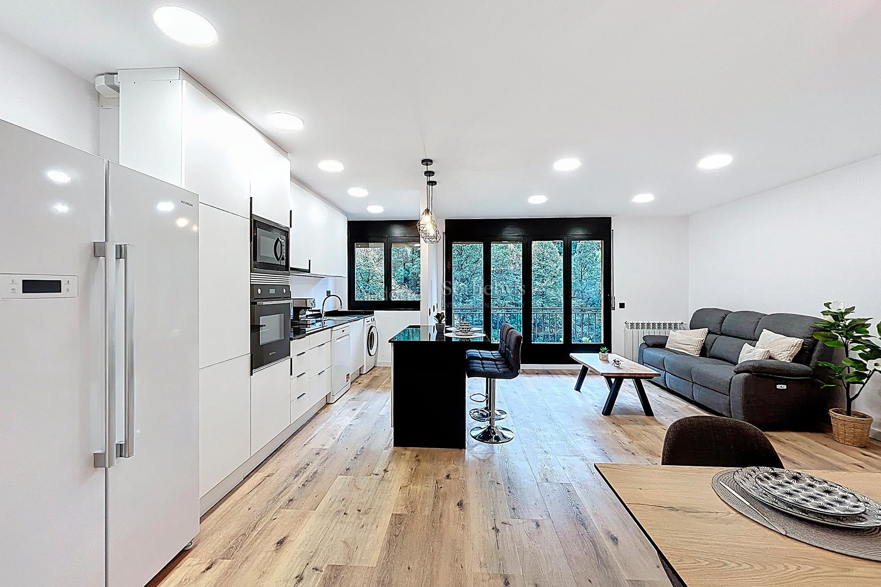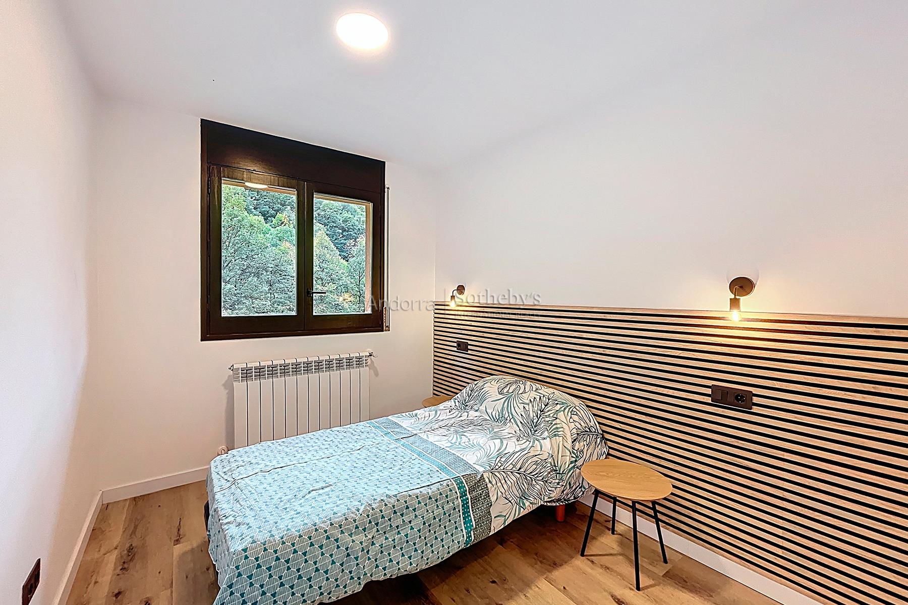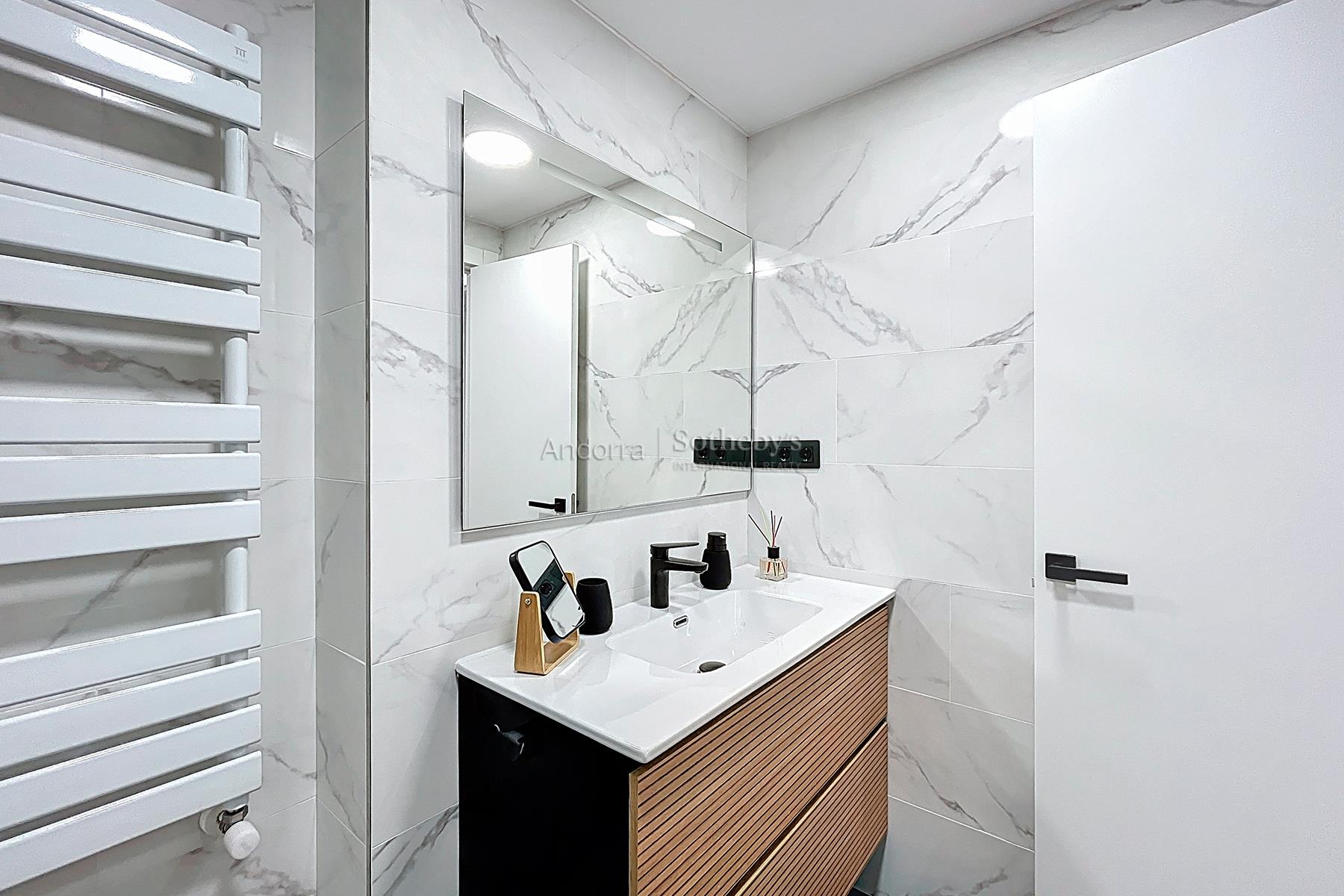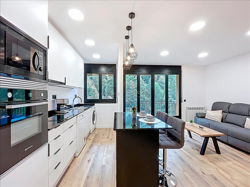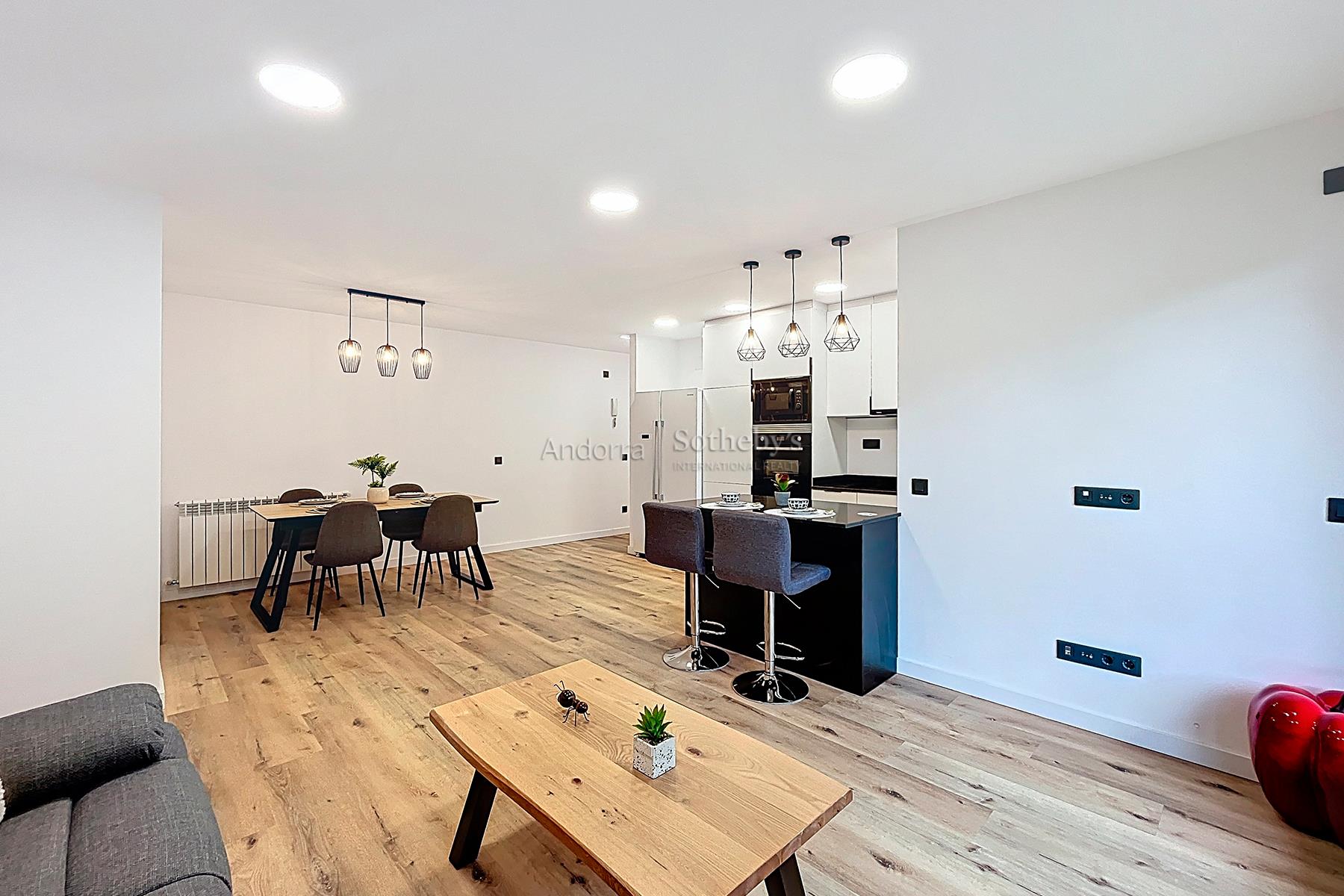 Полностью отремонтированная и полностью оборудованная квартира площадью 78 м² на продажу, расположенная в тихом и живописном районе Энголастерс, всего в нескольких минутах от центра Эскальдес-Энгордань. Недвижимость сочетает современный дизайн, функциональность и комфорт в уникальной обстановке. Квартира включает две двухместные спальни и две ванные комнаты, идеально спланированные для обеспечения удобства и уединения. В гостиной зоне — просторная гостиная-столовая с открытой кухней, светлое и уютное пространство с прямым выходом на террасу площадью 8 м², где можно насладиться видом на горы и спокойствием. Квартира, полностью меблированная и оборудованная, также включает парковочное место площадью 17 м² и ��ладовую, обеспечивая функциональность и дополнительное пространство для хранения. Идеальный вариант для тех, кто ищет современное, светлое и готовое к проживанию жильё в природной среде, недалеко от всех удобств Эскальдес-Энгордань.Особенности